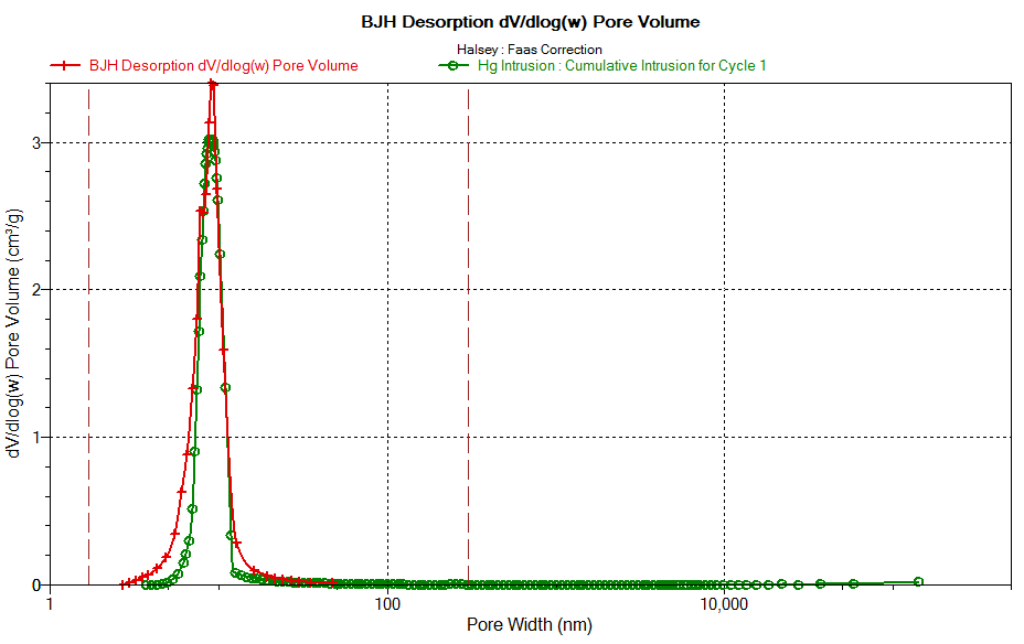 - 通过将气体吸附法和压汞法的数据叠加以及先进的NLDFT,增强的软件功能允许获得综合的孔径分布数据。