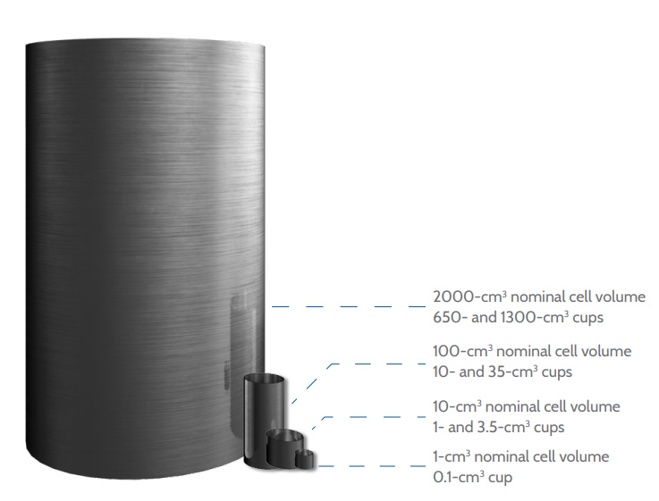 | 1厘米³的腔室 | 1.14厘米ID x 1.1厘米D (0.45英寸ID x 0.44英寸D) |