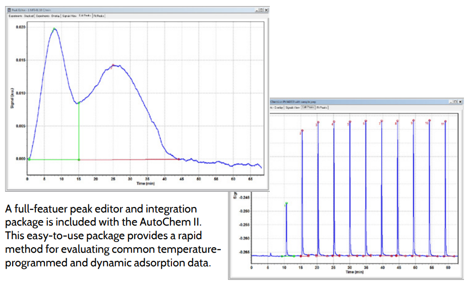 使いやすいAutoChem IIソフトウェアは,ウィザードおよびアプリケーションを含むWindows®インターフェイスを活用し,分析の計画,開始,制御に役立ちます。生データを収集,整理,アーカイブおよび削減できるほか,標準化されたサンプル情報と分析条件を保存して,将来の適用事例で容易に活用することができます。