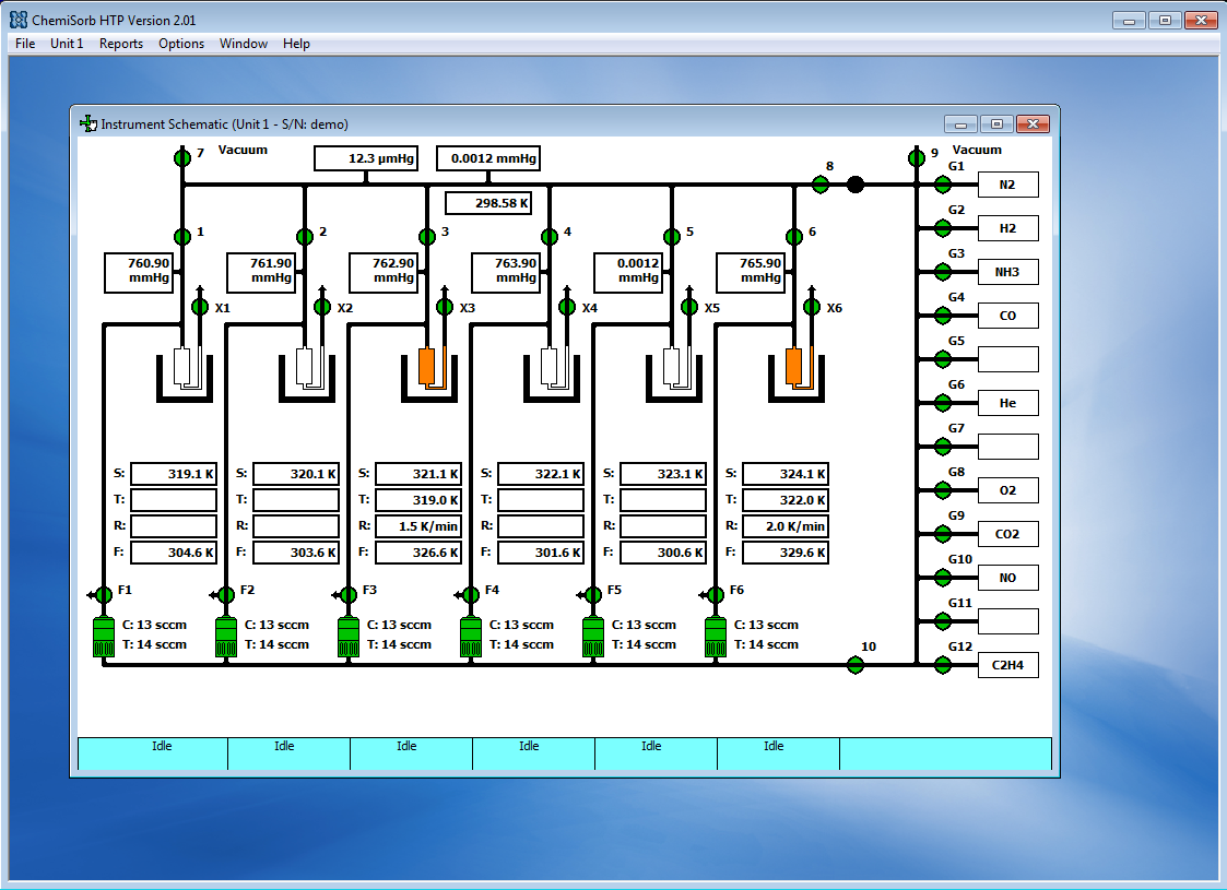 CHEMISOLB HTP는6개의분석스테이션각각각각에지속적으로모니터링압력변환기변환기변환기시스템과과과갖추고갖추고있습니다갖추고갖추고갖추고갖추고있습니다갖추고갖추고갖추고있습니다또한또한각포트에는시료의온도를독립적으로제어하고온도보다보다보다보다보다보다보다보다에서에서에서온도보다가능한한최고품질품질의등온선제공제공하기위해온도기록기록평형평형압력과함께기록기록평형옵션을사용하면사용자가다른평형시간을지정수수있습니다있습니다있습니다。시료를통한정확하고재현가능한흐름을보장하기위해질량유량컨트롤러가각포트에설치되어있습니다。최대12종의다른기체를化学isorb htp에동시에연결수있습니다。