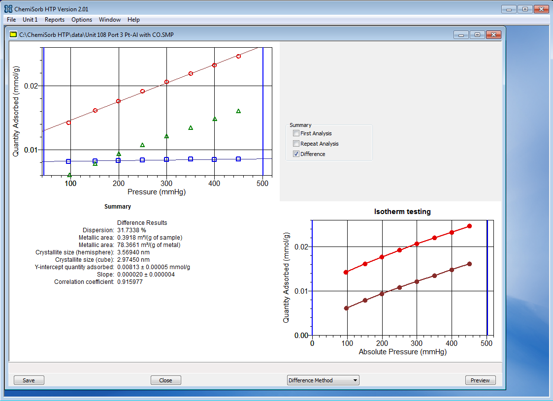 Chemisorb HTP분석프로그램은프로그램은은®®에서합니다。이로인해분석기의이더쉬워지고에이진행진행동안사용자가다른응용프로그램을실행할수있습니다있습니다。그래프의일부를확대하거나축을이동하여세부사항을검토할수있으며,그래프와데이터를클립보드에복사하여다른응용프로그램에붙여넣을수있습니다。보고서글꼴을선택하거나보고서머리글에회사로고를추가하는등방식으로보고서를사용자정의할수있습니다。