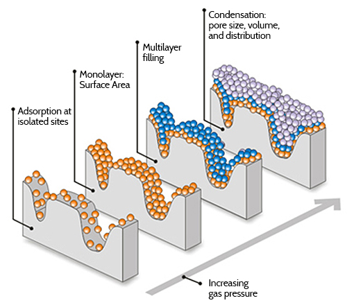 表面积是固体样品在分子尺度上暴露表面的量度。BET (Brunauer, Emmet, and Teller)理论是用于确定区域的最流行的模型;根据Langmuir模型也得到了相应的结果。样品通常是通过加热,同时排出或流动的气体在样品上去除杂质。将制备的样品用液氮冷却,并测量特定压力下吸附气体的体积进行分析。
