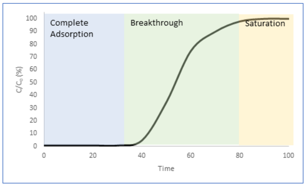 的选择性吸附分析仪又称选择性吸附分析仪breakthrough一个因为它有能力产生突破曲线。突破曲线consist的三个组件(见下图).1)完成一个dsorption- - - - - -的adsorbent完全吸附年代的目标气体物种,没有一个可以在出口检测到样本列。2)突破- - - - - -的目标遗传算法年代首先在?的出口检测到样本列.G是继续吸附,然而,吸附剂不再能够吸附进入的气体的整体示例列.3)饱和- - - - - -这则广告吸着剂已经达到饱和和可以吗没有长吸附目标气体允许它通过列。